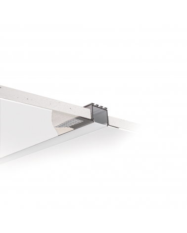 Das Profil KOZEL ist in Gipskartondecken / Gipskartonwänden einsetzbar. Nach dem Befestigen und Verputzen des Profils mit Feinputz sind keine Aluminium Elemente des Profils mehr sichtbar, nur eine schmale Lichtlinie, die mit der Oberfläche bündig ist. Mit der Abdeckung LIGER-22 erzielen Sie eine durchgehende Lichtlinie somit sind keine LED Punkte sichtbar.